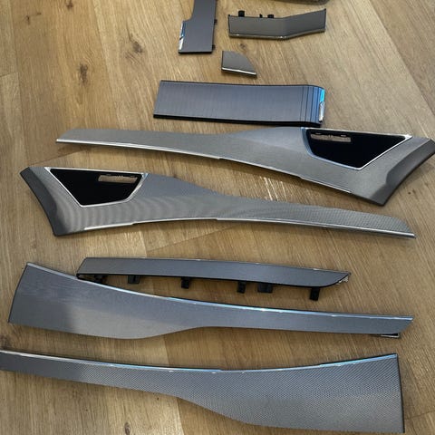 Pent brukte BMW f11 interiørlister i fargen sølv.
