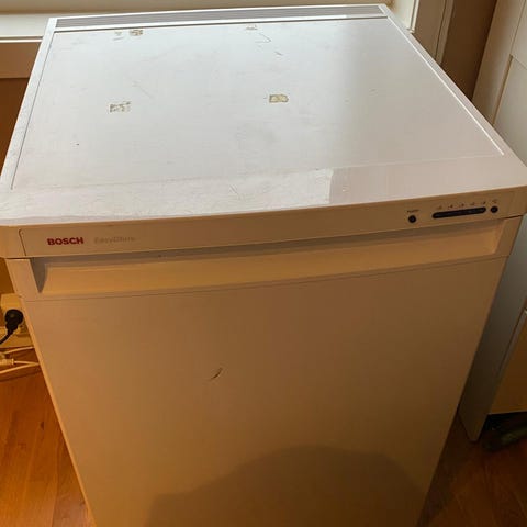 Fryseskapet er frittstående og har frontåpning med håndtak på siden. Det har kontrollpanel øverst med enkle indikatorlamper. Passer til bruk på kjøkken, bod eller andre steder der det er behov for ekstra frysekapasitet.