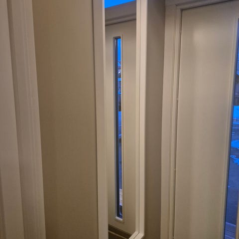 Speil med hyller på baksiden til oppbevaring.