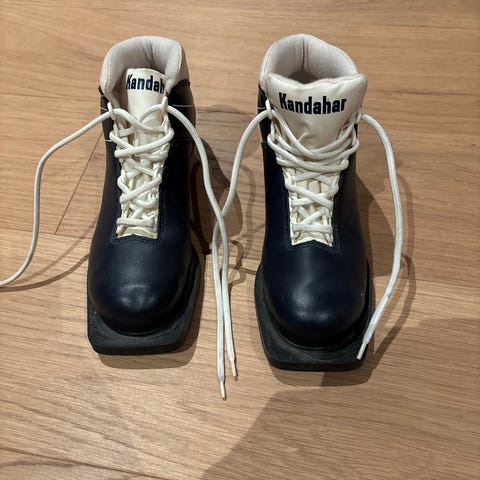 Kandahar skisko i ekte lær, str. 38.
