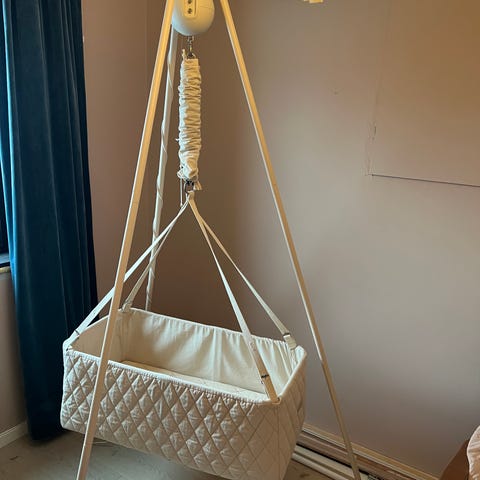 Vi leier ut en Moonboon Connect i helt strøken stand, uten synlige bruksmerker. Denne modellen har bluetooth og kan styres via app på mobilen. Den er kjøpt ny i mai 2025, og har kun vært brukt til ett barn fra 0 til 5 måneder. Den har vært gull verdt for nattesøvnen disse månedene!
