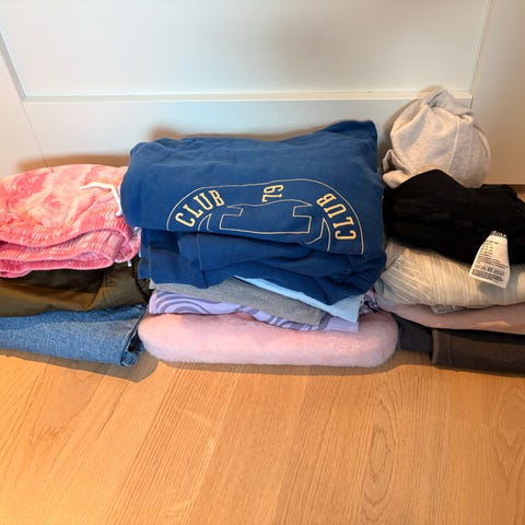 Bukser, gensere, shorts, ull, teskjorter, skjørt.