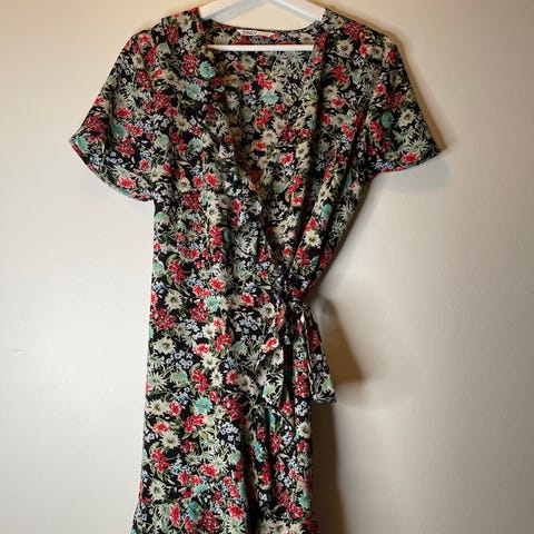 Blomstrete hvit only kjole, str 34