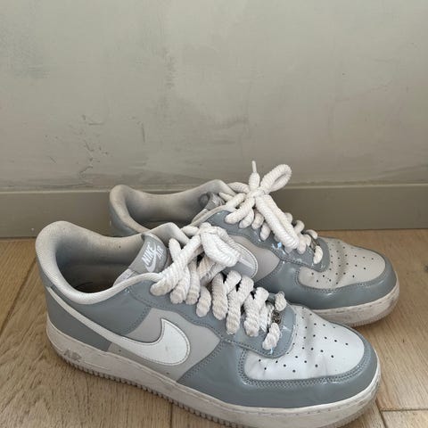 De er str. 37,5. nike airforce sko, de er noen bruksmerker på men forsatt veldig fine. Se bilder