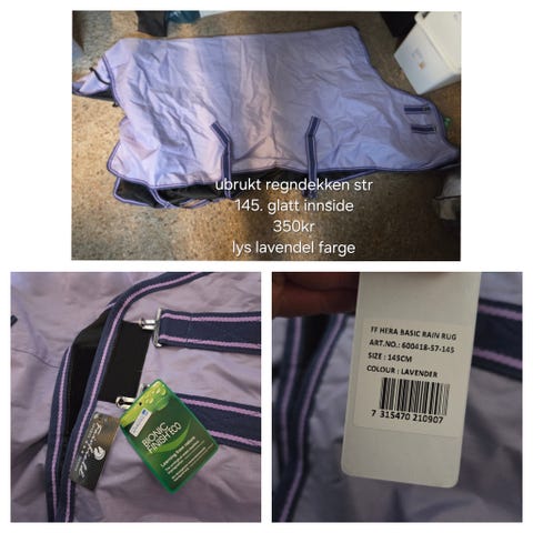 Ubrukt vanntett ridedekken med fleece innvendig, størrelse 135. Leveres i emballasje uåpnet😊