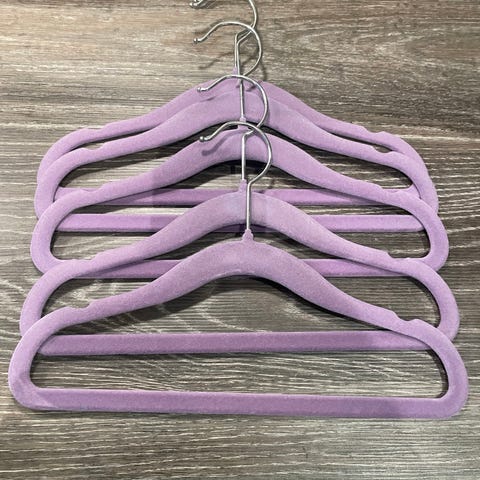 kleshenger for barn i rosa farge. Kleshengerne har fløyelsoverflate som gir et sklisikkert underlag for klærne. Metallkrok øverst for oppheng på vanlig garderobestang. Egnet til oppheng av barneklær som gensere, jakker, kjoler og bukser i garderobe eller på klesstativ. 25 kr.stk. Totalt 6 stk
