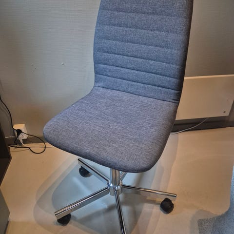Selger en veldig fint brukt kontorstol, Jysk Abildholt i grå/krom farge. I mitt eie har den vært brukt i hybelen til studier.