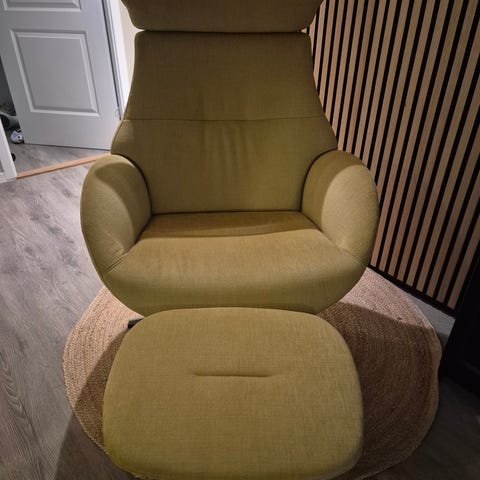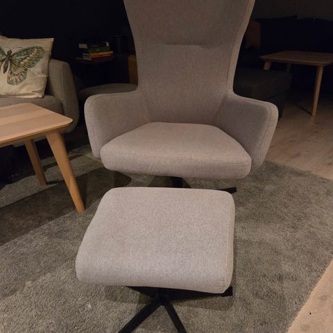 Hel og fin stol med krakk selges billig pga plassmangel.