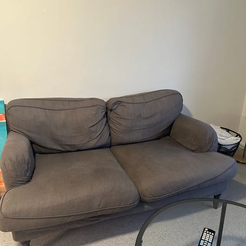 IKEA Stocksund 3-seat sofa i grått stoff og med svarte ben selges.