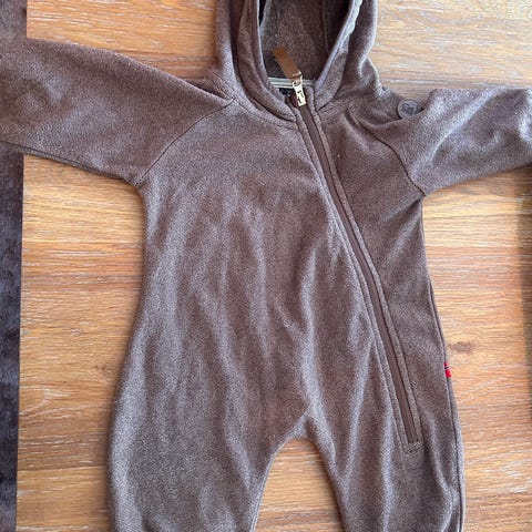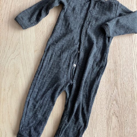 Veldig lite brukt dress i 100% merinoull fra Cubus. Str 50/56, kun vasket med milo. Føtter og hender kan vendes om til "votter/sokker".