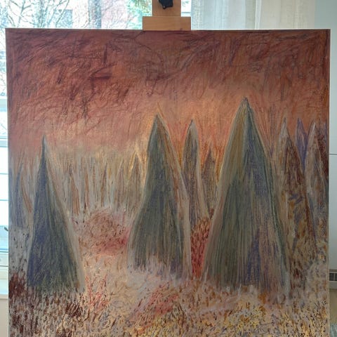 abstrakt maleri hvite former som gir ro i sjela