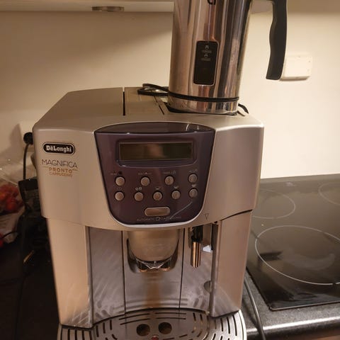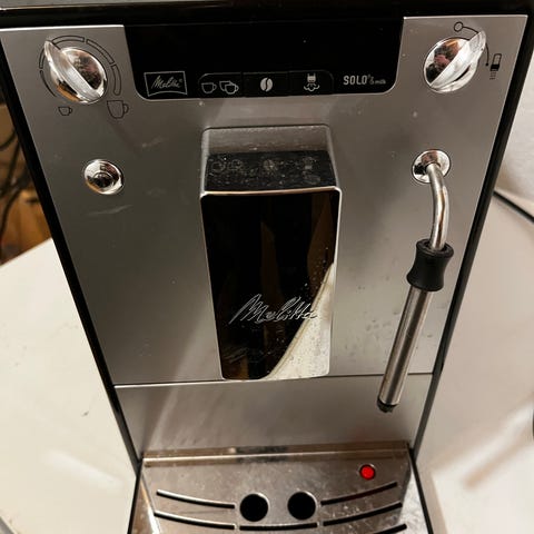 Det mangler også slangen til melke skum delen i gummi da den ikke ble brukt og harknet. Elkjøp selger i aluminium for 300kr.