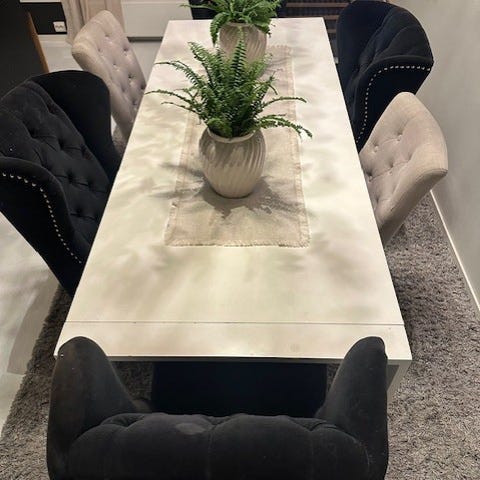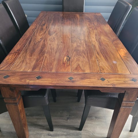 Bord med ileggsplate og 6 stoler