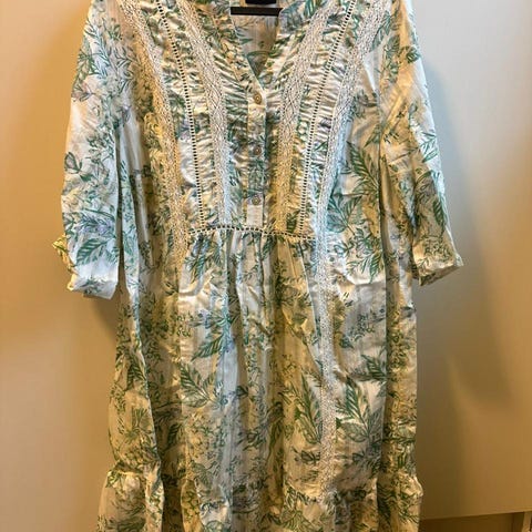 Zizzi sommerkjole for dame i størrelse S. Kjolen er laget i polyester og har et flerfarget mønster i lyse pastelltoner. Den er ermeløs med V-utringning og glidelås i ryggen. Modellen har en rett, knelang fasong som passer til bruk på varme dager eller til hverdags og enkle anledninger.