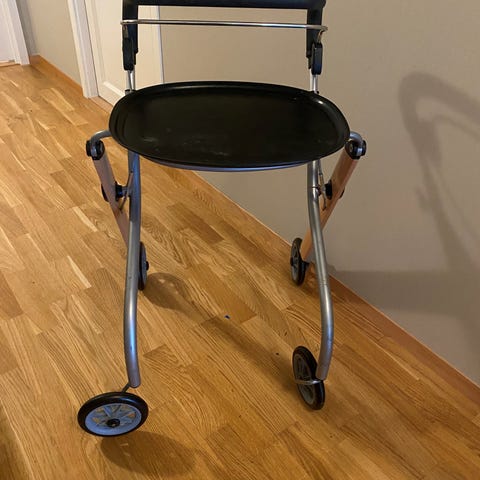 rollator med sete og kurv