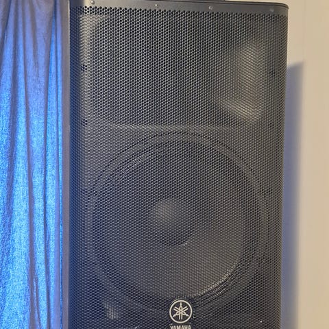 Pent hjemmebrukt aktiv høyttaler til scene, øvingsrom, mancave, arrangement etc. 300W - spiller høyt og rent til de aller fleste formål. Modellen er vel 10-12 år gammel, og jeg mener den kostet rundt 4500,- på Sound1.no i sin tid. Den er litt oppskrapet i plasten på den ene siden (ved bærehåndtaket), men dette er kun kosmetisk. Ellers nokså strøken i selve kassen.
