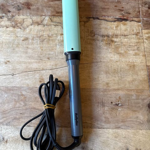 Babyliss krølltang for styling av hår. Elektrisk modell med ledning og vanlig støpsel. Har klemme for å holde håret på plass under bruk, samt justerbare innstillinger på håndtaket. Passer til forming av krøller og bølger i håret.