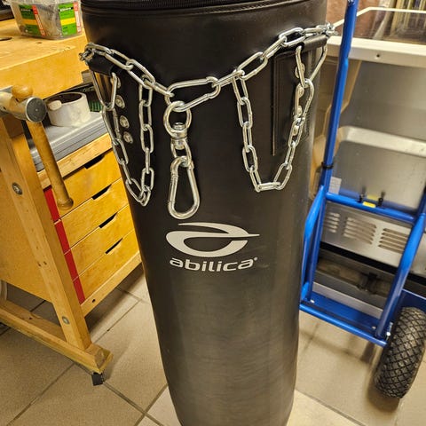 Abilica boksesekk i svart farge. Egnet for boksing og annen kampsporttrening, samt kondisjons- og styrketrening. Kan brukes hjemme eller i treningsrom for slag- og sparktrening. Merkevarelogo er synlig på fronten av sekken. Veldig lite brukt. Krok medfølger ikke. Justerbar i tyngde. Boksehansker kan medfølge for ekstra pris hvis interessant. Nypris 1499,-. Litt over 2 år gammel.