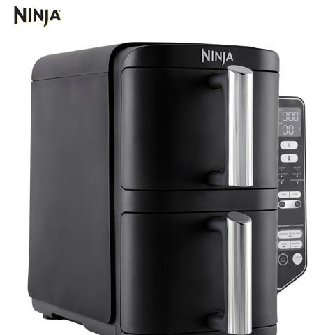 Ninja airfryer med to separate skuffer i svart utførelse. Modellen har digitalt kontrollpanel i front med flere forhåndsinnstilte programmer og tids-/temperaturjustering. Hver skuff har egen uttakbar kurv og rist for enkel tilberedning og rengjøring. Egnet til tilberedning av ulike typer mat som pommes frites, grønnsaker, kjøtt og fisk, samt oppvarming av rester. Enheten plasseres på benk eller komfyrtopp med stabilt underlag under bruk.
