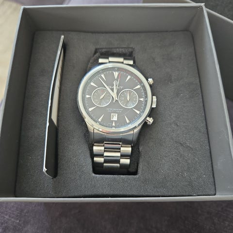 Faucon Roman F10025 er en stilren klokke med blå urskive, romertall og detaljer i gull som gir et eksklusivt uttrykk. Den har en solid lenke i stål og gulltoner, praktiske kronograffunksjoner og en kassediameter på 43 mm som gir et markant og moderne preg.