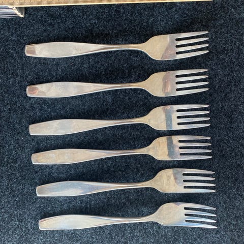 Standard størrelse spisegaffel sølvplett i mønster Vesta og diverse sølvplett som jeg ikke har funnet mønster på selges kr 200 samlet. Kan diskuteres og må hentes.