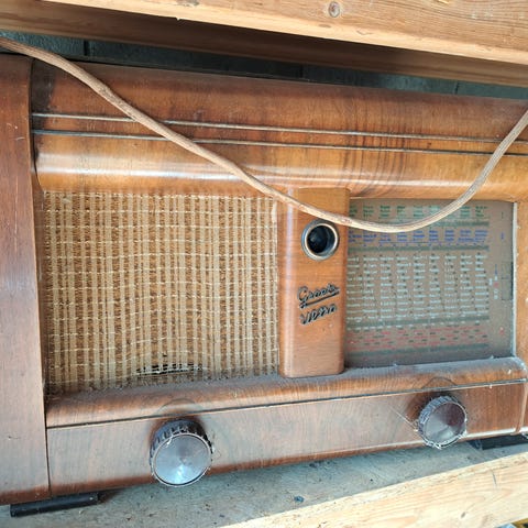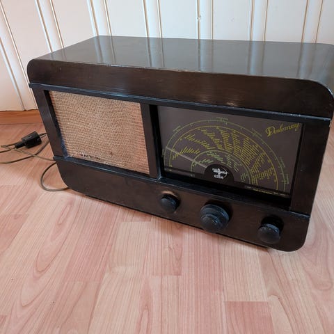 • Jeg har ikke teknisk kunnskap om rørradioer og har ikke fått inn musikkstasjoner, så den selges som den er («as is») uten garanti.