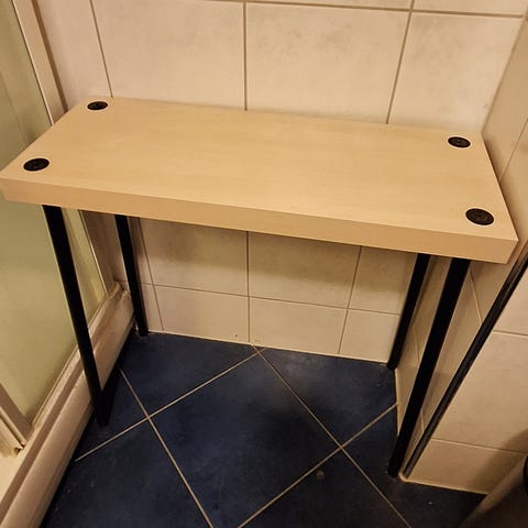 Lite bord som ble brukt som pc bord. Jeg vet dessverre ikke dimensjonen til bordet men det er ganske lite