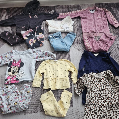 Klespakke til jente, str 98 og 104. Helt og pent, svake flekker kan forekomme men ikke godt synlig, pent og lite brukt 🌸