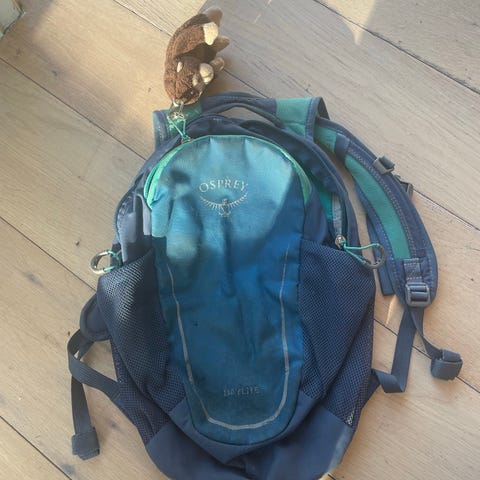 Osprey Verve 9 l ryggsekk i lilla. Noen slitasjemerker i printet foran, ellers i ypperlig stand.