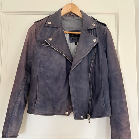 Ekte skinn! Veldig anvendelig jakke for vår og høst. Selges fordi den dessverre er blitt for liten til meg. Merke bak på høyre skulder. Ikke forsøkt å fjerne. Utenom dette er den i fin stand!