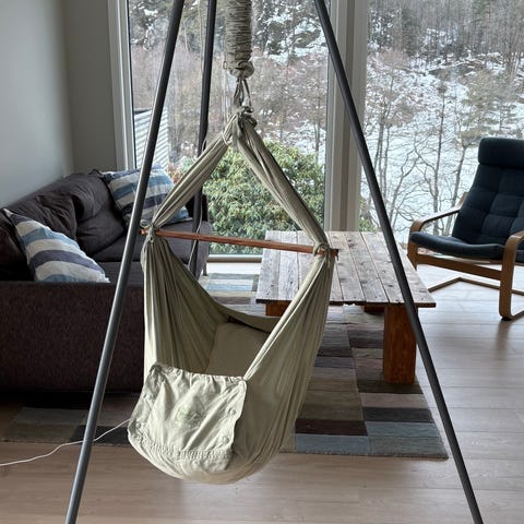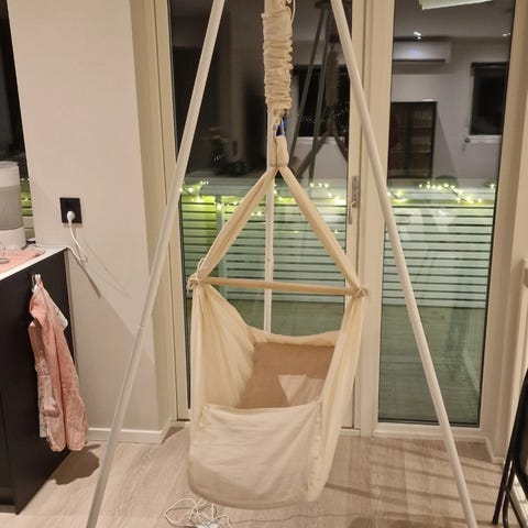 Selger en Moonboon hengevugge i fargen seagrass. Det følger med grått stativ, motor, avstiverbunn og madrassbeskytter
