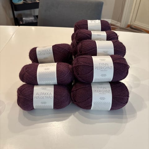 Selger 3 hele og 2 litt brukte nøster med ullrikke garn fra House of yarn. Dette garnet er 100% ull. 100 g=90 meter. Fargen er nr 314 og partiet er 0524.