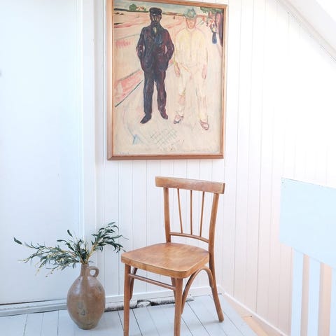 Motivet er et vakkert og stemningsfullt landskap fra Munchs periode i Tyskland, med karakteristiske bølgende linjer og sterke fargetoner et blikkfang på veggen og et solid samlerobjekt.
