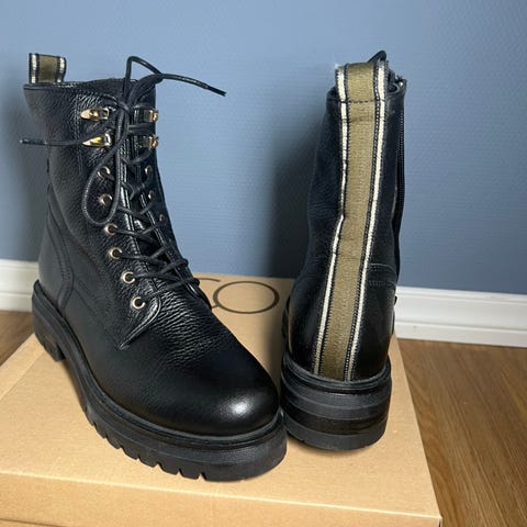 Støvlene er brukt 1 gang , de har merket KMB. De ble for små til meg.