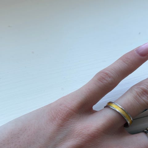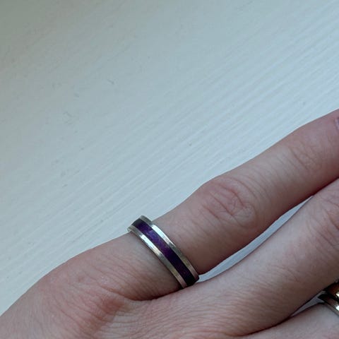 David-Andersen ring i sølv for unisex. Ringen har et bredt bånd med dekorative detaljer og er laget hovedsakelig i sølv med innslag av andre materialer. Passer både til hverdagsbruk og som et enkelt smykke til mer formelle anledninger.
