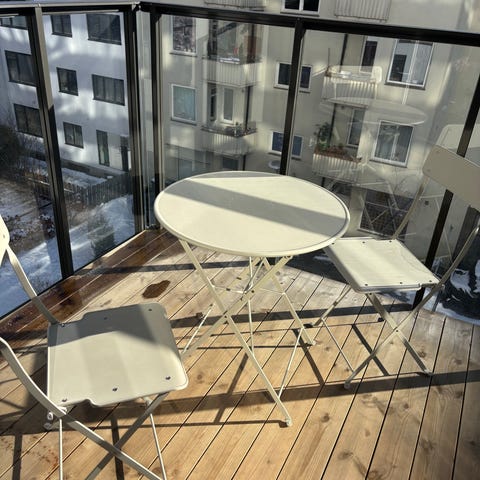 Brukt utendørs og har normale bruksmerker etter vær og bruk, men er fortsatt i god stand. Kan med fordel oljes/behandles for ekstra fin finish.