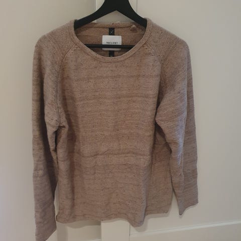 Vailent genser for herre i størrelse M. Genseren har grå front og rygg med kontrastfargede ermer. Passer til hverdagsbruk og kan kombineres med både jeans og joggebukse. Materialet fremstår som lett og egnet til innendørs bruk eller mildere vær.