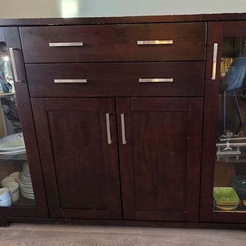Lite skader - ene kanten på TV-benk som har fått et pittelite tøft møte med livet ;) Har ikkje lagt merke til det før eg sjekket over nå ved salg.