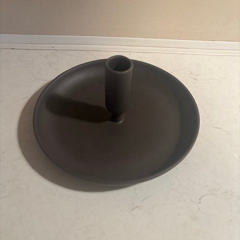 Artek dekorasjonsfat i rund form med svart kant og rottingflettet bunn. Fatet har en kort sylinderformet fot under, slik at det står litt hevet fra underlaget. Passer som dekorasjonsobjekt på bord, hylle eller kommode til bruk gjennom alle årstider.