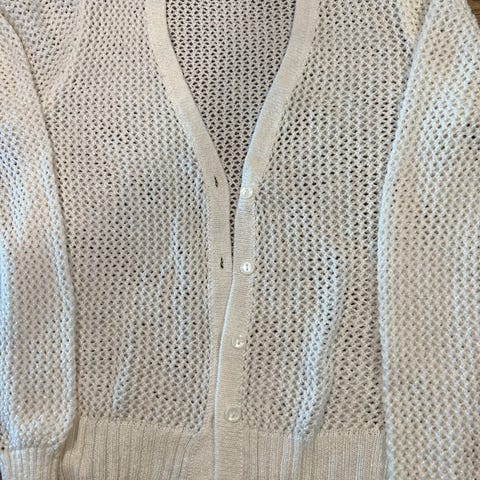 Myk comfy strikkegenser cardigan med gull knapper og to frontlommer. Str XS men er en oversized fit. Strikk genser HM gulldetaljer bomull.