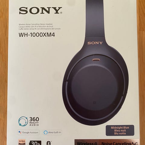Sony WH-1000XM4 hodetelefoner, trådløse over-ear i svart. Modellen har aktiv støydemping, Bluetooth-tilkobling og innebygd mikrofon. Hodetelefonene leveres i et etui som beskytter under oppbevaring og transport. Egnet til bruk med mobil, nettbrett, PC og andre enheter som støtter Bluetooth-lyd eller kablet tilkobling via medfølgende kabel, der dette er aktuelt for modellen.