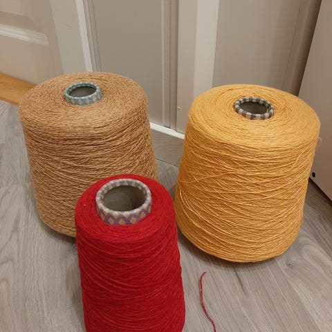 Selger unna mye garn på spoler til Maskinstrikk, håndstrikk og vev, til sterkt reduserte priser.