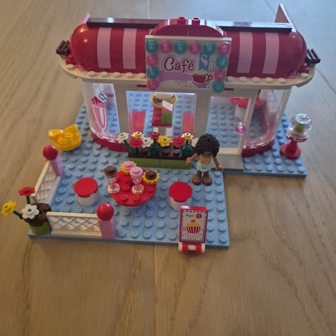 LEGO Friends isbutikk lekesett. Settet inkluderer en isbutikk med disk og serveringsområde, sitteplass med parasoll, liten vogn/bil for levering samt diverse småtilbehør som is, kaker og drikke. Figuren(e) og bygningselementene er i typiske Friends-farger med rosa, blå, hvit og gule detaljer. Egner seg til rollelek og bygging i LEGO