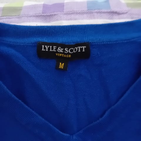 Tynn Lyle & Scott genser i bomull for herre i størrelse M. Genseren er blå og laget av bomull. Lite og pent brukt. Ingen bruksmerker eller skjolder/bleking (bare skygger fra lys på bildene)