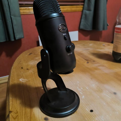 Blue Yeti USB-mikrofon i svart. Mikrofonen kobles til via USB og egner seg for bruk med PC eller Mac til taleopptak, streaming, gaming eller podkast.
