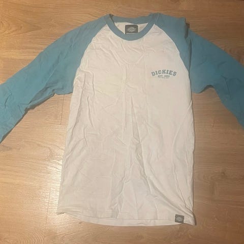 Vailent genser for herre i størrelse M. Genseren har hvit front og bakside med blå ermer og rød «NY»-detalj på brystet. Passer til hverdagsbruk og fritid. Materiale er ikke oppgitt på lappen, men fremstår som et lett og mykt stoff egnet til innendørs bruk og mildt vær.