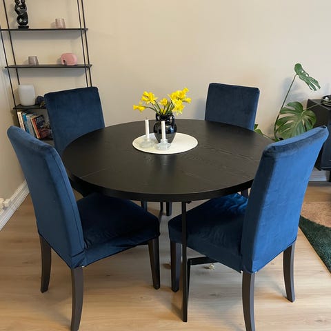 Selger et pent og lite brukt rundt spisebord fra bohus. Farge svart. Brukt i ca 6 mnd.