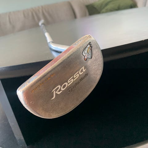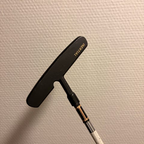Putter golfkølle i svart farge. Køllen har tradisjonelt putterhode med siktemarkeringer på toppen og skaft i metall. Grepet er mørkt med enkel markering. Egner seg til bruk på greenen for presise putter i golfspill.