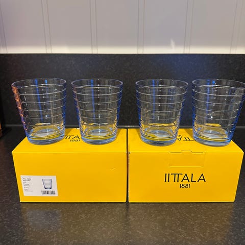 Eggeglass i fulgleform, designet av Jorma Vennola for Iittala Finland. 6 stk i perfekt stand. 9x7x3cm.