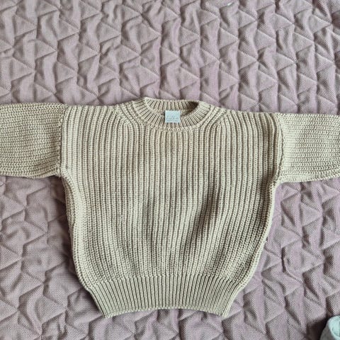 Usikker på str da den er hjemstrikket og mer eller mindre ubrukt (kun prøvd på), men ca str 74. Typ sennepsgul farge.